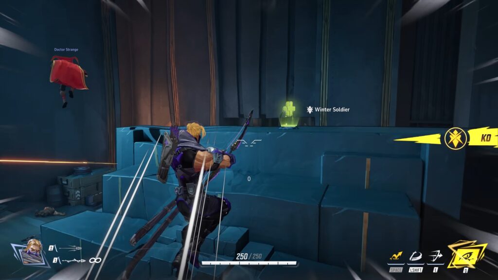 Advanced Strategy: Coordinate Hypersonic Arrow with teammate abilities. When Venom dives into enemy backline or Winter Soldier uses Kraken Impact, enemies often jump to dodge. Fire Hypersonic Arrow through grouped enemies to slow/ground multiple targets, creating easy focus-fire opportunities for your team.