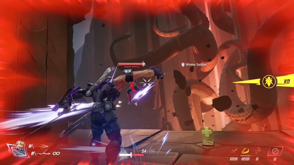 • Close-range panic button: When flankers (Spider-Man, Psylocke) dive your position and you miss the Crescent Slash timing, spam Blast Arrow point-blank. The cone spread means at least 2-3 arrows will hit even without precise aim, dealing 135-200 damage that forces them to retreat or die.